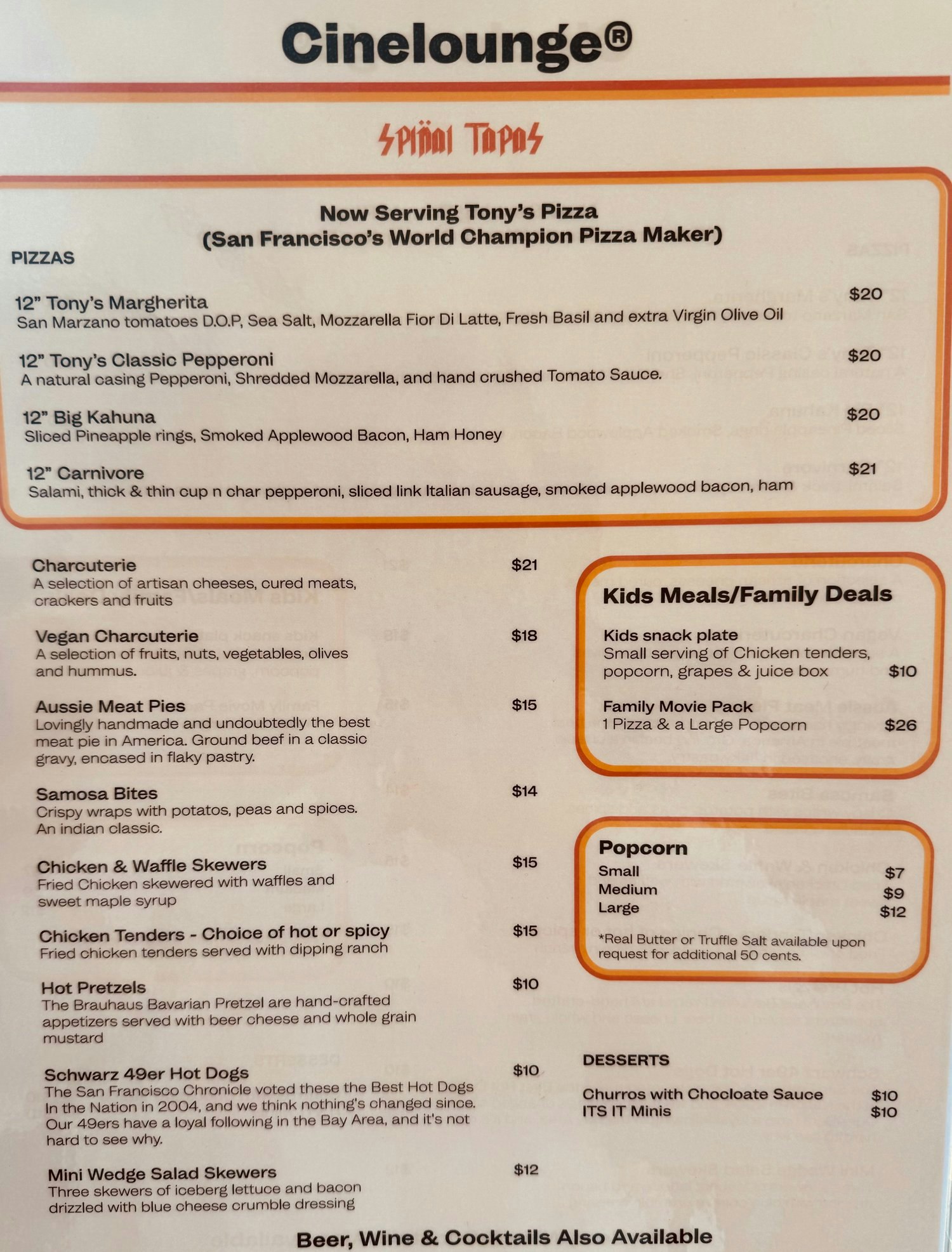 Food menu SF Tiburon